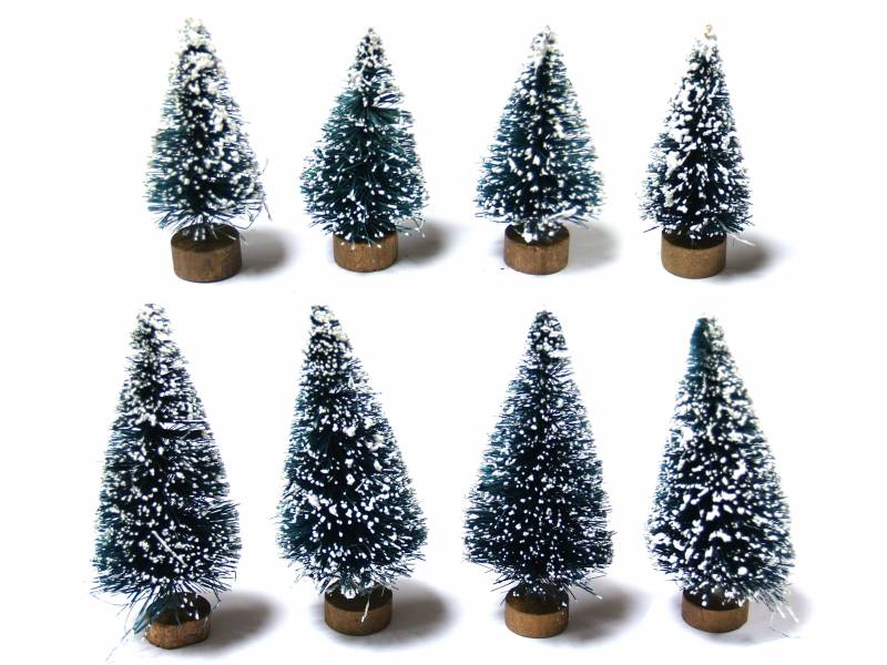 SET DI 8 PINETTI VERDI SU BASE IN LEGNO